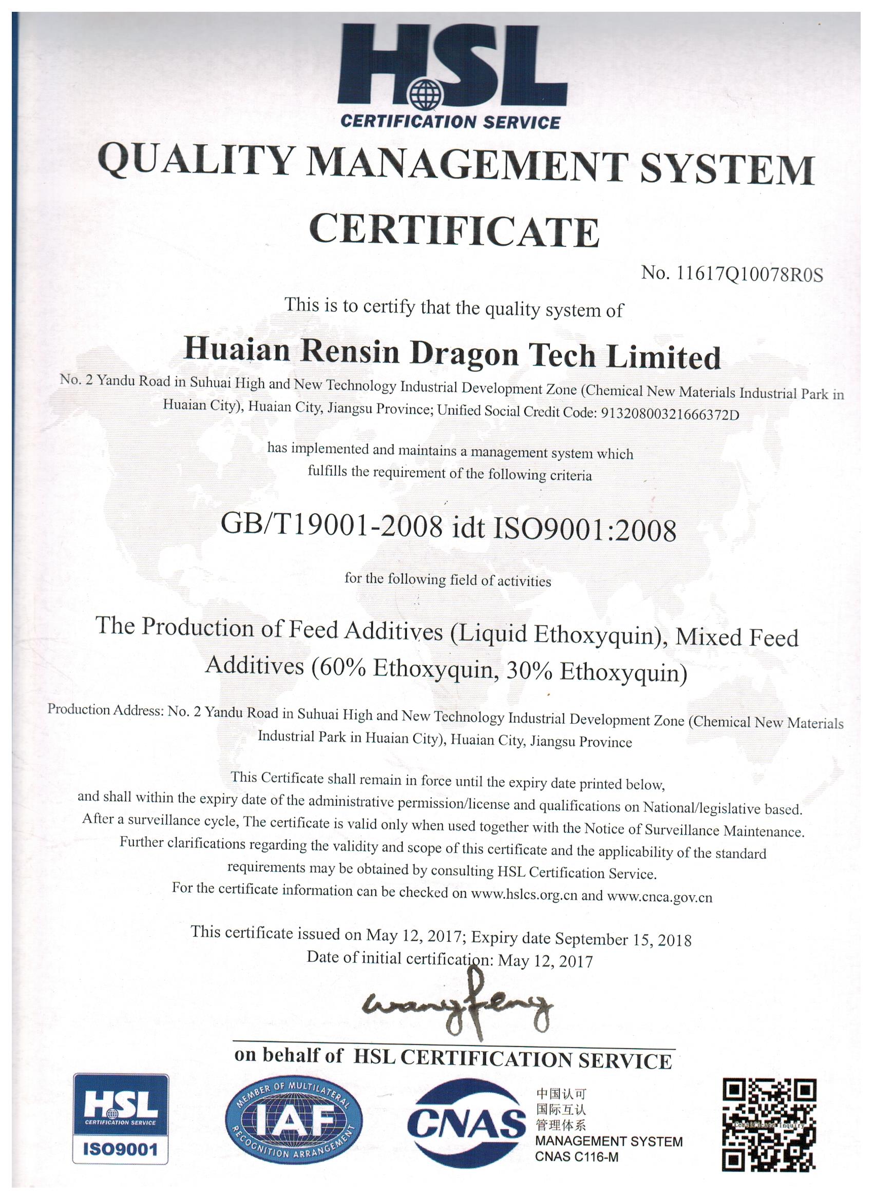 潤龍科技乙氧基喹啉自投產以來,生產穩妥、安全、質量可靠,生產理念堅持走全球一體化道路,所投產的產品全部基于國際質量水平的技術基礎之上實施,主營產品“乙氧基喹啉”已家喻戶曉,暢銷亞洲、歐洲、南美洲、北美洲、大洋洲等30多個國家和地區,年出口占比高達80%以上。同時,與國內多家百強企業形成強力的合作關系。